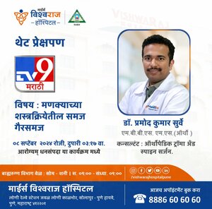 Dr. Pramod Kumar Surve, Consultant Orthopaedic Spine Surgeon in Loni Kalbhor, Pune, recently participated in a special live interview on TV9 Marathi's "Arogyam Dhan Sampada" program. During the sessio...
